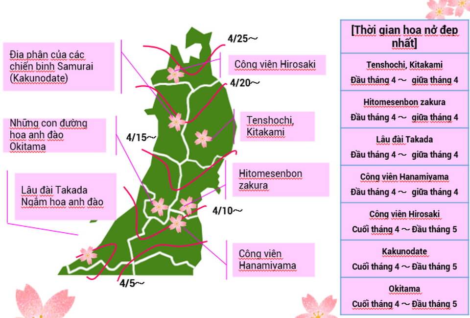 Tohoku thuộc khu vực phía bắc đảo Honshu, nơi đây có sông, núi, hồ và biển nên thiên nhiên vô cùng đa dạng và phong phú. Vào thời điểm giao mùa giữa mùa đông và mùa xuân, du khách sẽ bắt gặp những địa điểm có tuyết, có hoa anh đào và ngay cả những địa điểm vừa có tuyết vừa có hoa anh đào.