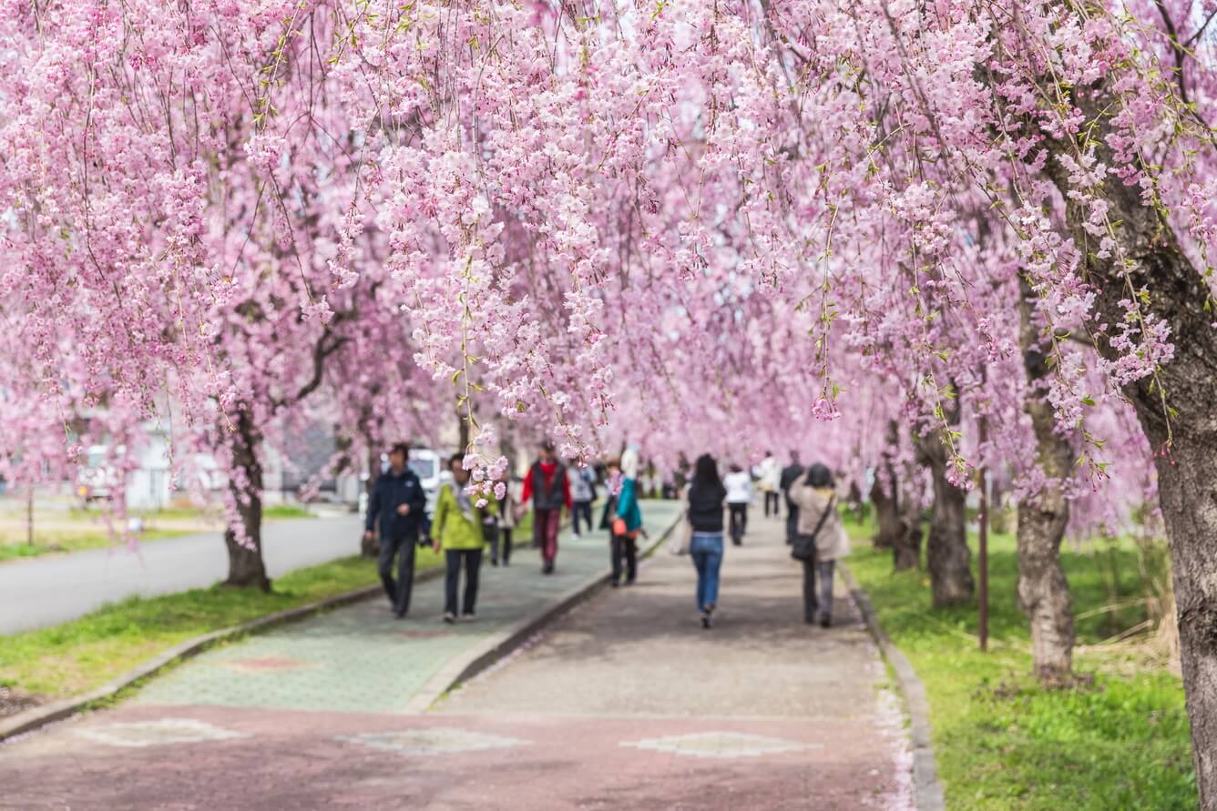 Mùa xuân Fukushima tuyệt đẹp với muôn ngàn cây anh đào khoe sắc rực rỡ từ hồng nhạt đến hồng đậm và được trồng thành nhiều hàng trải dài trên những con đường thẳng tắp hay trong công viên. Ngắm hoa anh đào hãy ghé thăm công viên Hanamiyama – nơi bạn sẽ cảm nhận như mình đang lạc giữa một thiên đường hoa xuân với nhiều loài hoa khác như: mộc lan, liên kiều, thủy tiên, violet... Fukushima còn nổi tiếng với giống hoa anh đào rũ (Shidare Zakura) tựa như “dòng thác” tại công viên Kitakata, thu hút rất nhiều du khách đến thưởng lãm. (Ảnh: onsuda/Shutterstock)