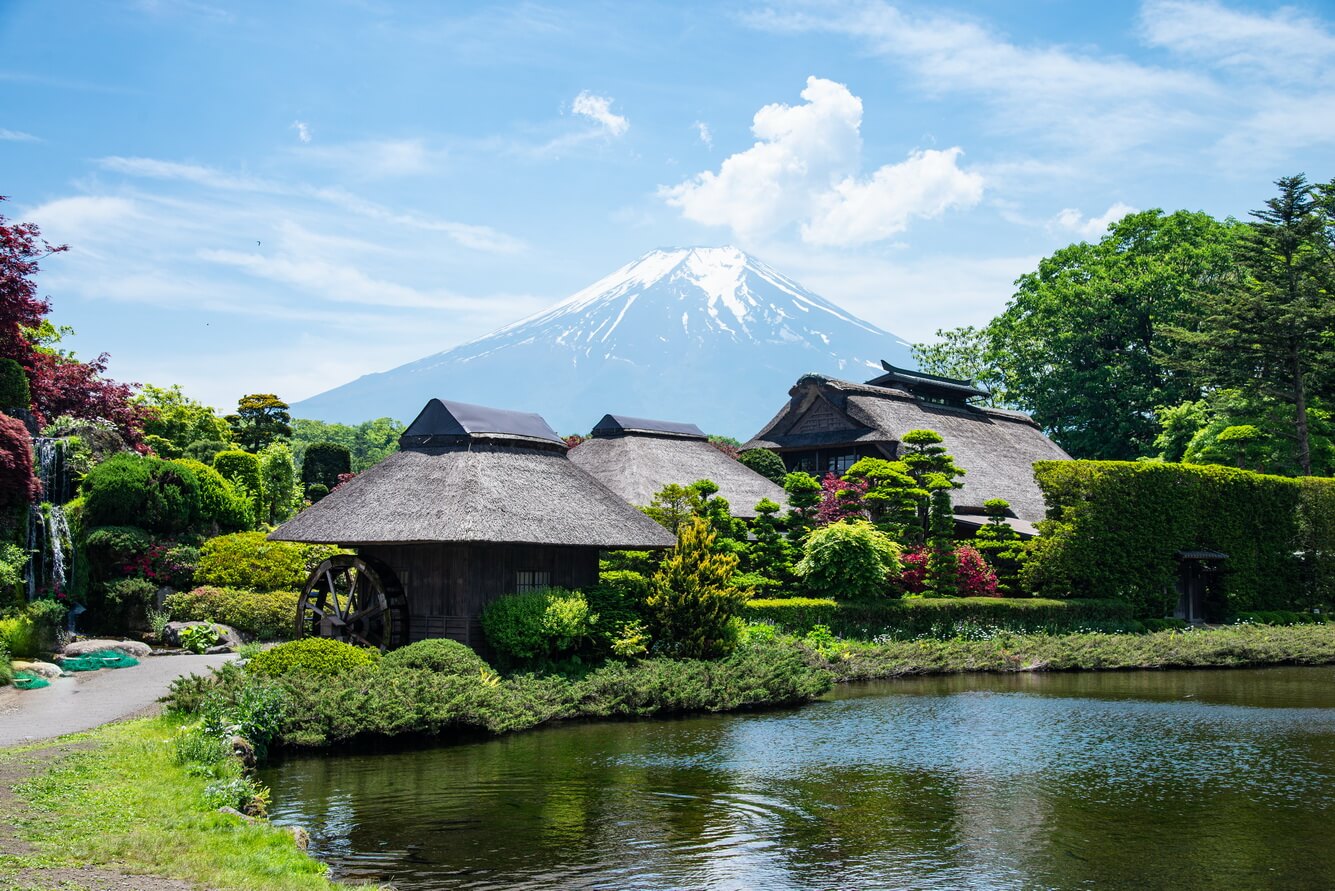 Nằm dưới chân núi Phú Sĩ, làng cổ Oshino Hakkai cách thủ đô Tokyo khoảng 100km thu hút du khách bởi vẻ đẹp bình yên, giản dị và và nét kiến trúc Nhật Bản xưa. Ngôi làng giống như bức tranh thôn quê giữa đời thực với những vườn rau, chè xanh mơn mởn hay những luống hoa cải vàng ruộm. Đặc biệt làng có vườn bonsai tuyệt đẹp và những hồ nước xanh màu ngọc bích soi bóng cây cổ thụ. Bạn sẽ thích thú khi tản bộ ngắm cảnh đẹp của ngôi làng giữa không gian xưa yên bình đến lạ hay trải nghiệm các phong tục thú vị và thưởng thức các món ăn đặc sản địa phương. (Ảnh: Arunporn Thanapotivirat/Shutterstock)