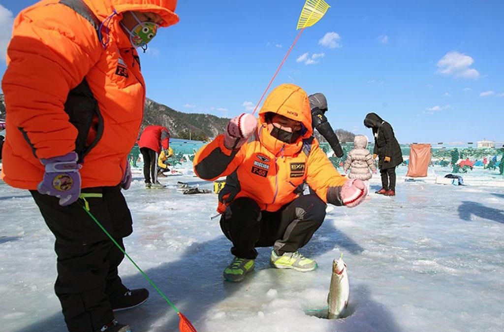 Từ ngày 4 đến 26/1 là thời điểm diễn ra lễ hội câu cá hồi trên băng tại huyện Hwacheon, tỉnh Gangwon. Đây là vùng hẻo lánh, băng giá suốt mùa đông và con sông tại đây được phủ một lớp băng dày. Lễ hội là dịp du khách có thể thử câu cá, bắt cá bằng tay, chơi trượt tuyết, bóng băng, đắp tượng tuyết… Nếu bạn chưa từng đi câu cá thì cũng không cần quá lo lắng vì tới đây bạn sẽ được hướng dẫn tận tình bởi những “huấn luyện viên” dày dặn kinh nghiệm.