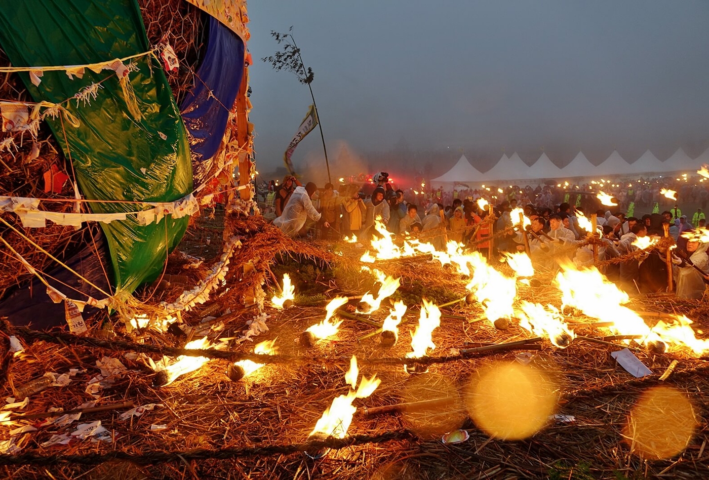 Là một phần của lễ hội kéo dài 3 ngày từ cuối tháng 2 đến đầu tháng 3 mỗi năm, 1 ngọn đồi ở Jeju (Saebyeol Oreum) được đốt lên để đón chào sức khỏe và mùa gặt được mùa cho năm mới. Đây là 1 biểu tượng của văn hóa từ đời xưa với việc đốt đi những ngọn cỏ cũ để diệt sâu bọ trước mùa trồng mới.
